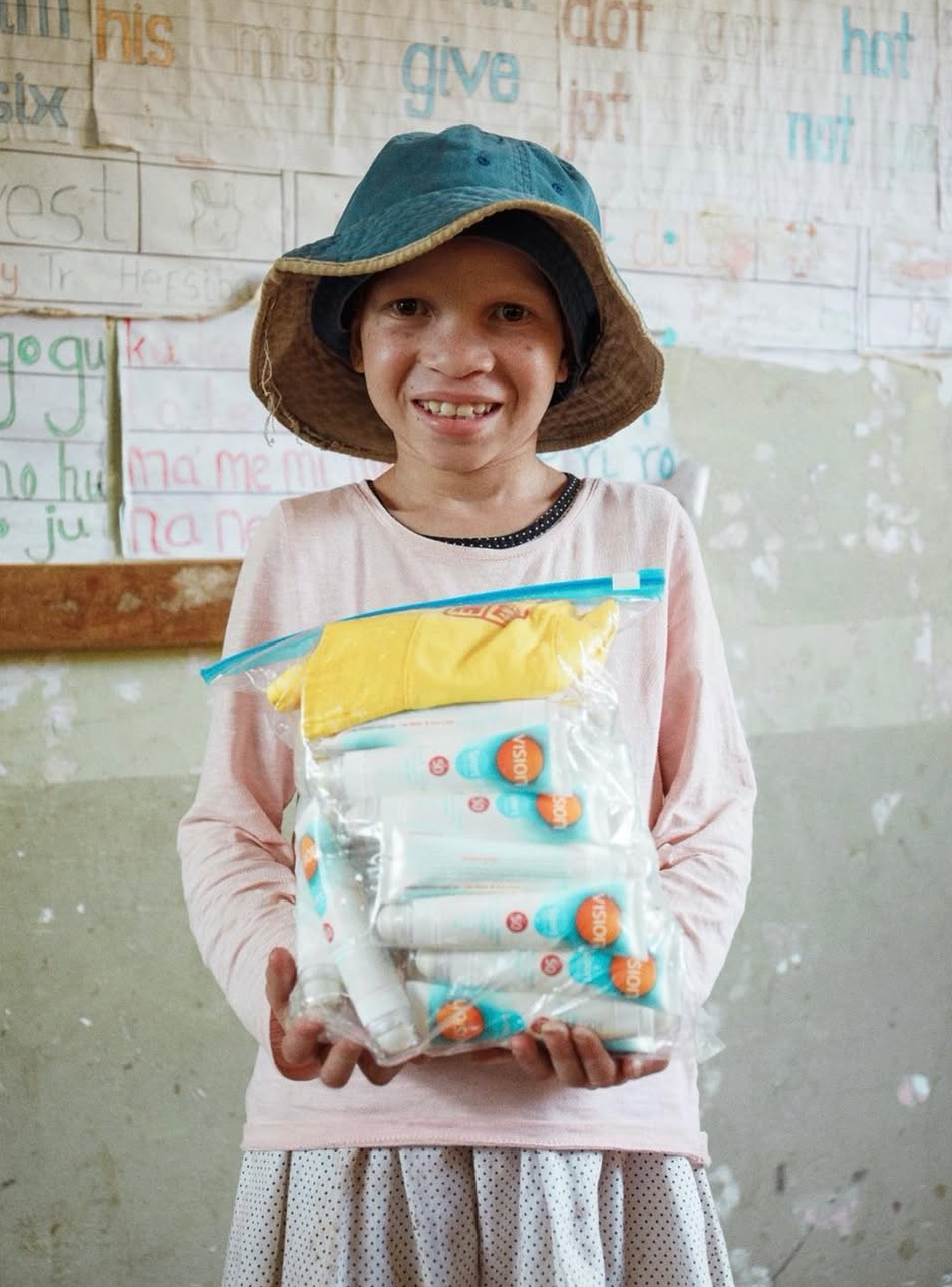 “To protect 1 child with Albinism against skin cancer with sunscreen will cost just €2,89”
